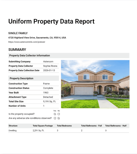 A complete, verifiable property record—ready for review, systems, or downstream workflows.